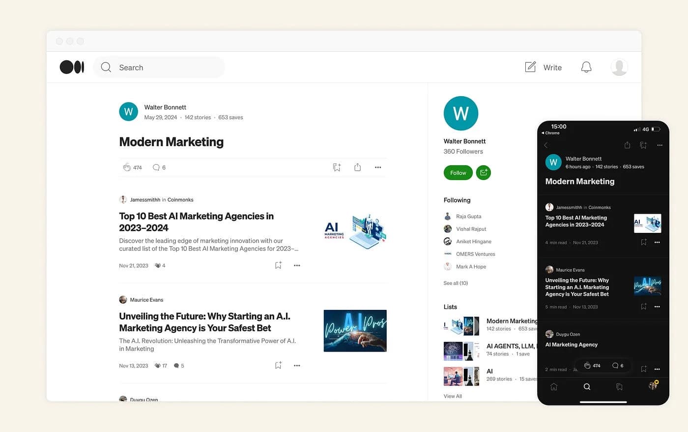 Medium represents a fundamentally different blogging philosophy than WordPress. Rather than building an isolated blog on your own domain, Medium operates as a collaborative platform where millions of writers publish alongside each other. The platform's algorithm surfaces articles based on engagement signals—claps, comments, reading time—rather than SEO optimization.